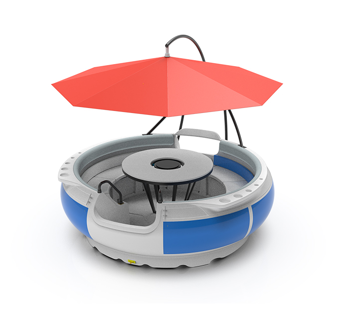 公园、江河、港湾水上游玩、景区观光、水上餐厅、农家乐娱乐的绝佳选择。整船一体化成型,双层设计,采用电动推进器行驶,环保节能,产品规格分为直径2500mm和2900mm两种,分别可以承载6-8人和8-10人。
